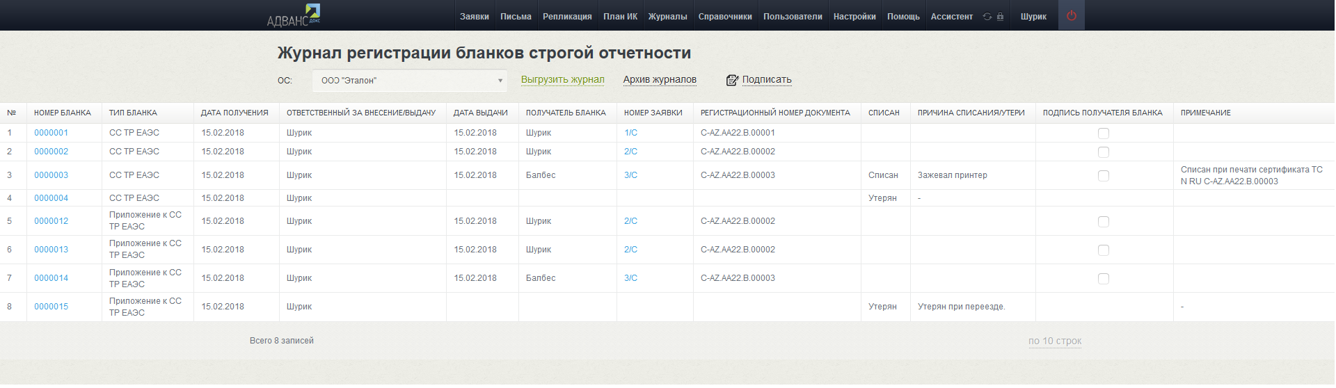 - Автоматическое формирование журнала бланков строгой отчетности