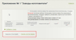 1. В приложения «Заводы-изготовители» к заявке и к СС добавили возможность загружать данные о заводах-изготовителях через шаблон Excel.