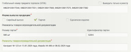 1. Блок чекбоксов «Форма выпуска продукции» перенесли в нижнюю часть раздела «Продукция». Это делает более удобным заполнение полей в случае партии или единичного изделия, когда требуется указание реквизитов товаросопроводительной документации.