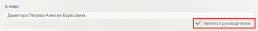 Исправили ошибку. Если стоит галочка «является руководителем», то в поле отображается ФИО и должность руководителя.