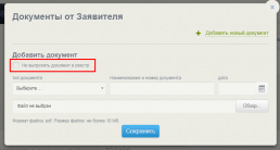 В «Документах от заявителя» добавлен флаг «Не выгружать документ в реестр». При его активации в реестр не уйдет информация о наименовании документа и прикрепленная скан-копия. Однако, в печатной форме заявления, в поле «Перечень представленных с Заявлением документов:» информация о наименовании документа будет отражена.