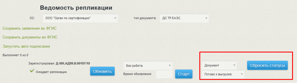 В ведомость репликации добавлена функция для пакетного изменения статусов репликации в выгружаемых документах. Такая функция может быть использована при нестабильной работе реестра и позволяет пакетно менять статусы «Ошибка в выгрузке» на любой другой статус.